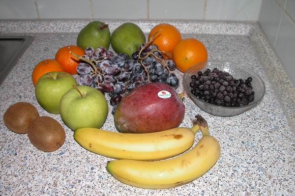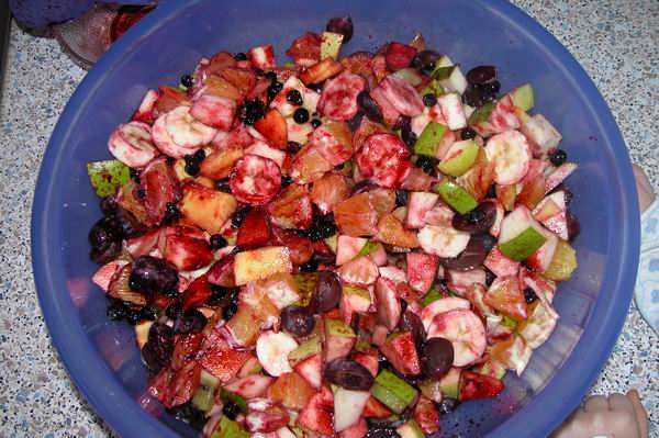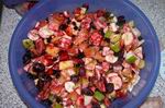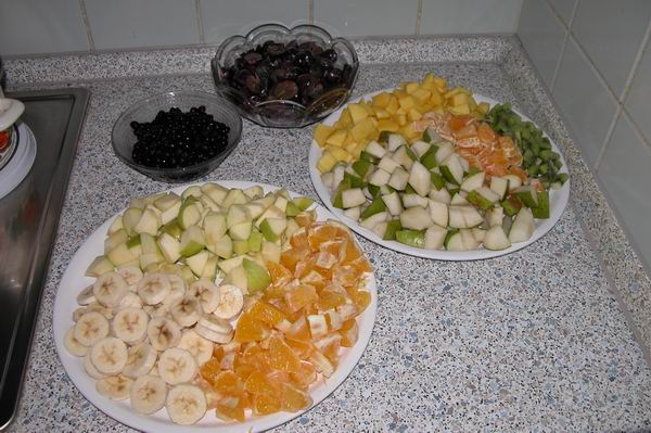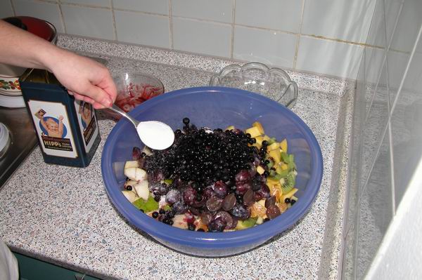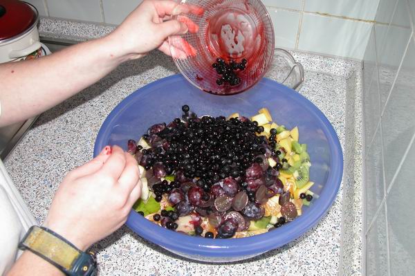 Bis auf die Blaubeeren den Rest klein schneiden, |